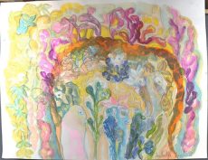 La floraison sous verre aquarelle encre 65cm x 50cm